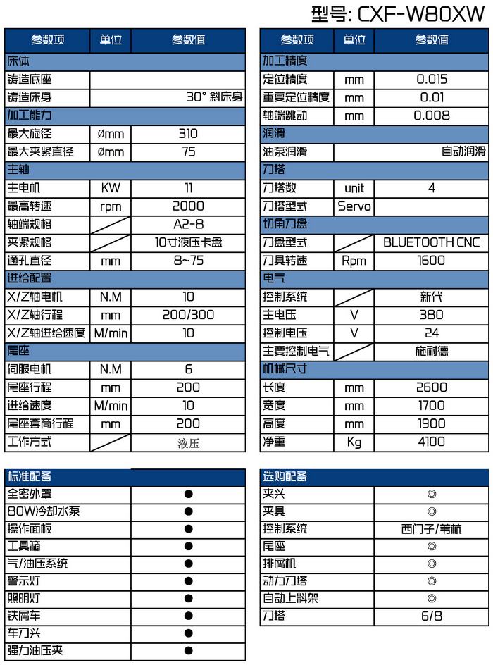CXF-W80XW數(shù)控車方機(jī)采用30°整體斜床結(jié)構(gòu),結(jié)構(gòu)新穎,具有剛性強(qiáng),轉(zhuǎn)速高,使用壽命長的特點(diǎn),配合排刀結(jié)構(gòu),真正實(shí)現(xiàn)了車銑復(fù)合功能。