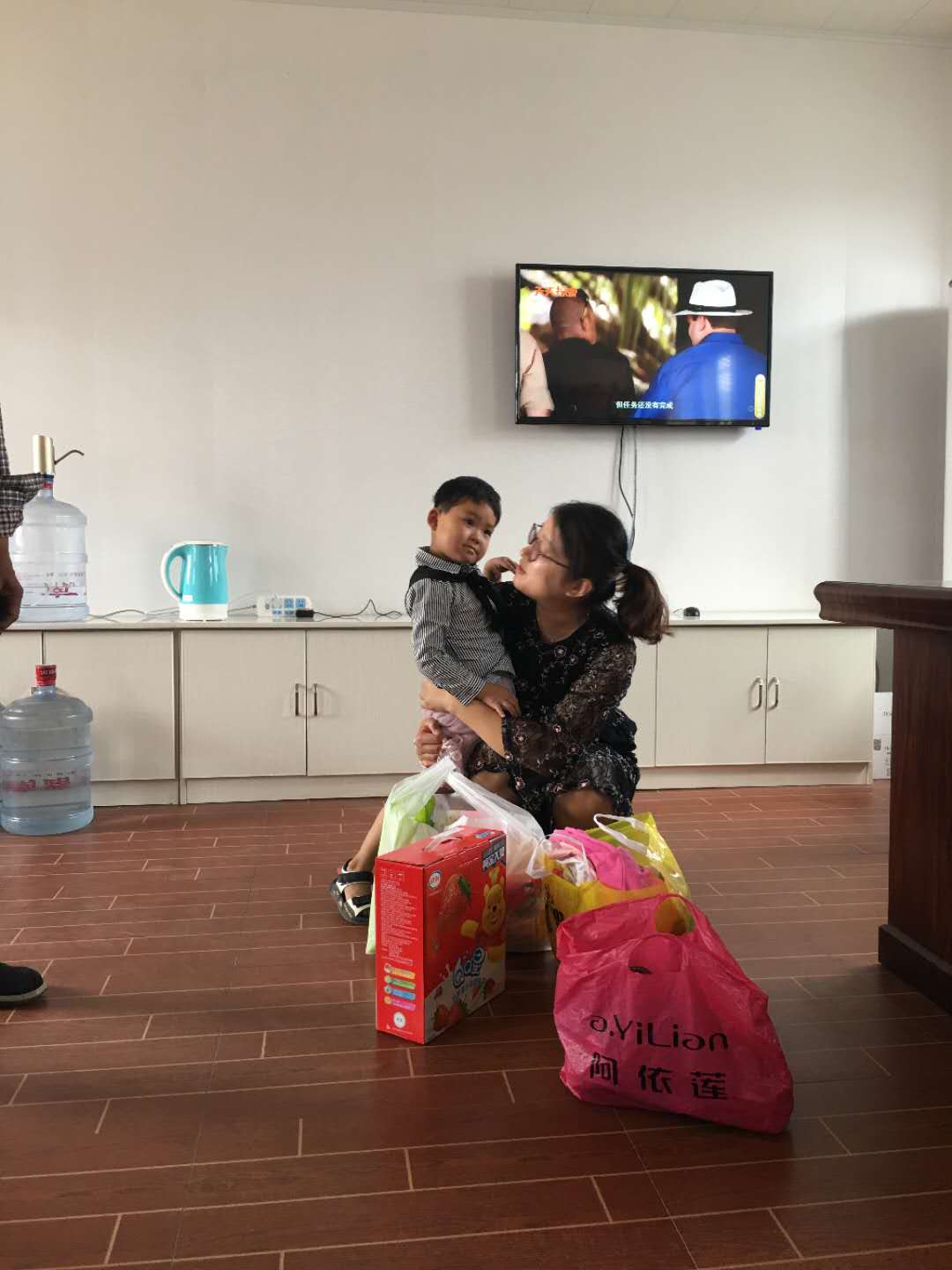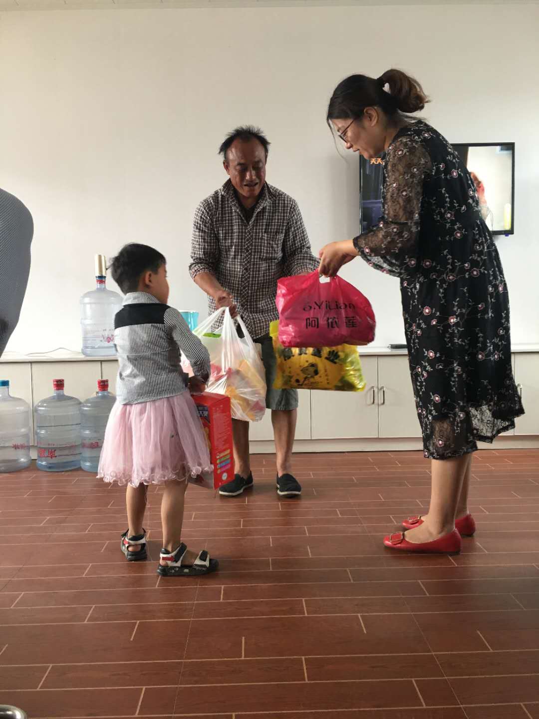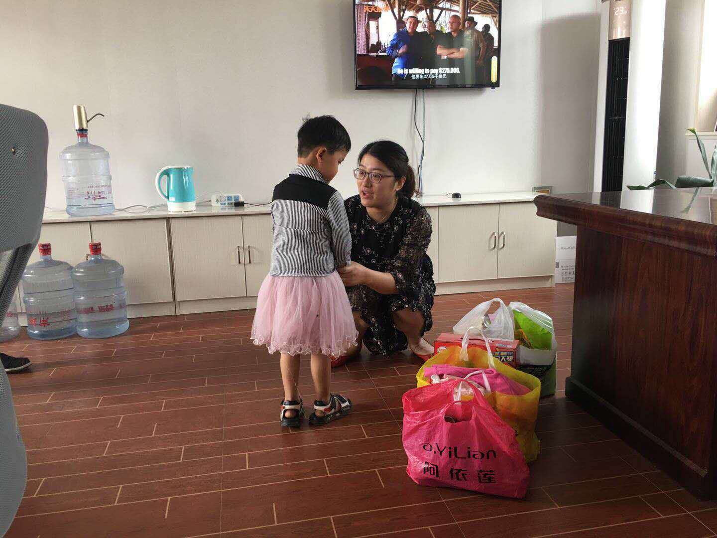 (一大早,公司代表來到了委員會看望小囡囡)