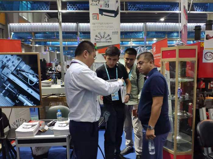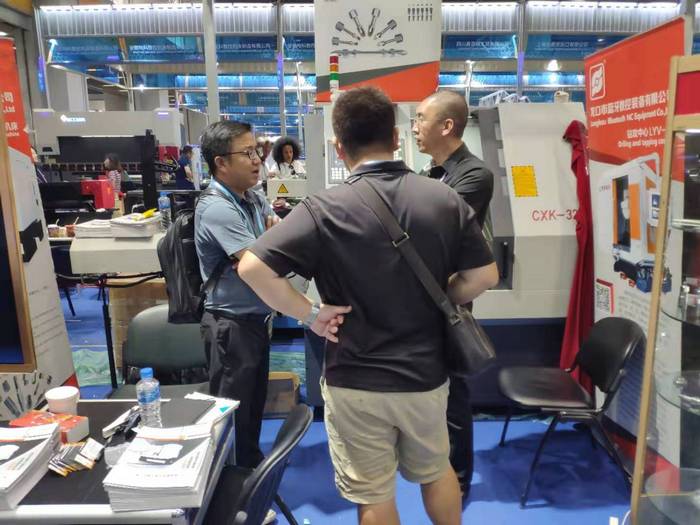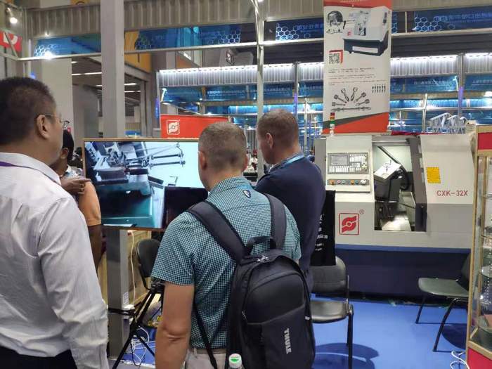 作為藍(lán)牙裝備的拳頭產(chǎn)品之一的數(shù)控批頭車銑一體機(jī)床(簡稱批頭車床),雖然已經(jīng)多次在廣交會及國內(nèi)外各大展會亮相,但魅力依舊不減,2019秋交會的第二天,展位上依舊有很多海內(nèi)外客商表現(xiàn)出濃厚的興趣。